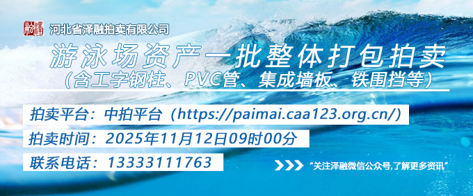 - [拍賣公告]游泳場資產一批(含工字鋼柱、PVC管、集成墻板、鐵圍擋等)整體打包拍賣20251112